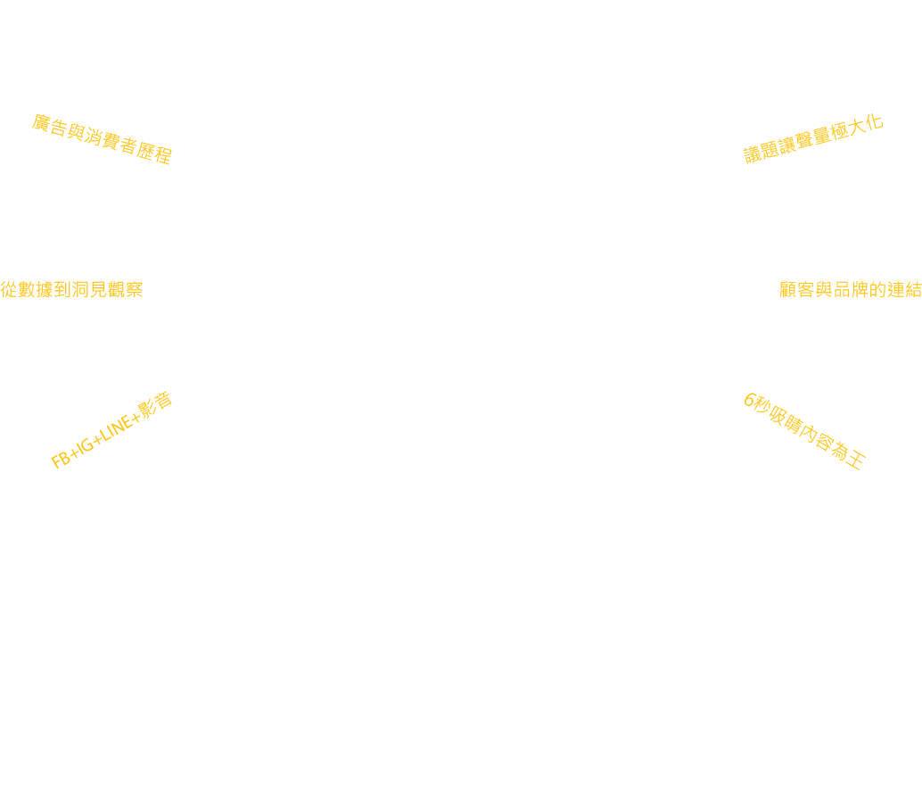 我們以品牌策略為基礎,結合創意與科技,透過大數據,不只幫品牌說出好故事,更將廣告效益轉換成真實銷售。
